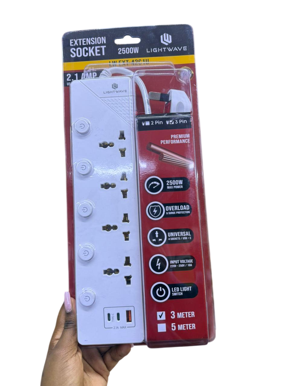 The Lightwave 3-metre extension socket LW EXT 42C1U delivers safe and reliable power for homes, offices, and workspaces. Designed with universal sockets, it allows multiple devices to run simultaneously while offering essential protection. Equipped with overload and surge safeguards, it protects your electronics from voltage spikes and overcurrent, ensuring uninterrupted and secure power supply.
