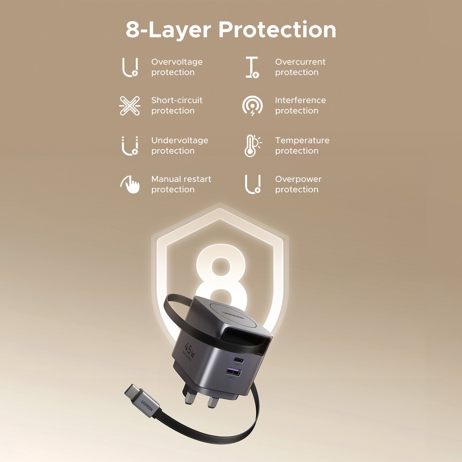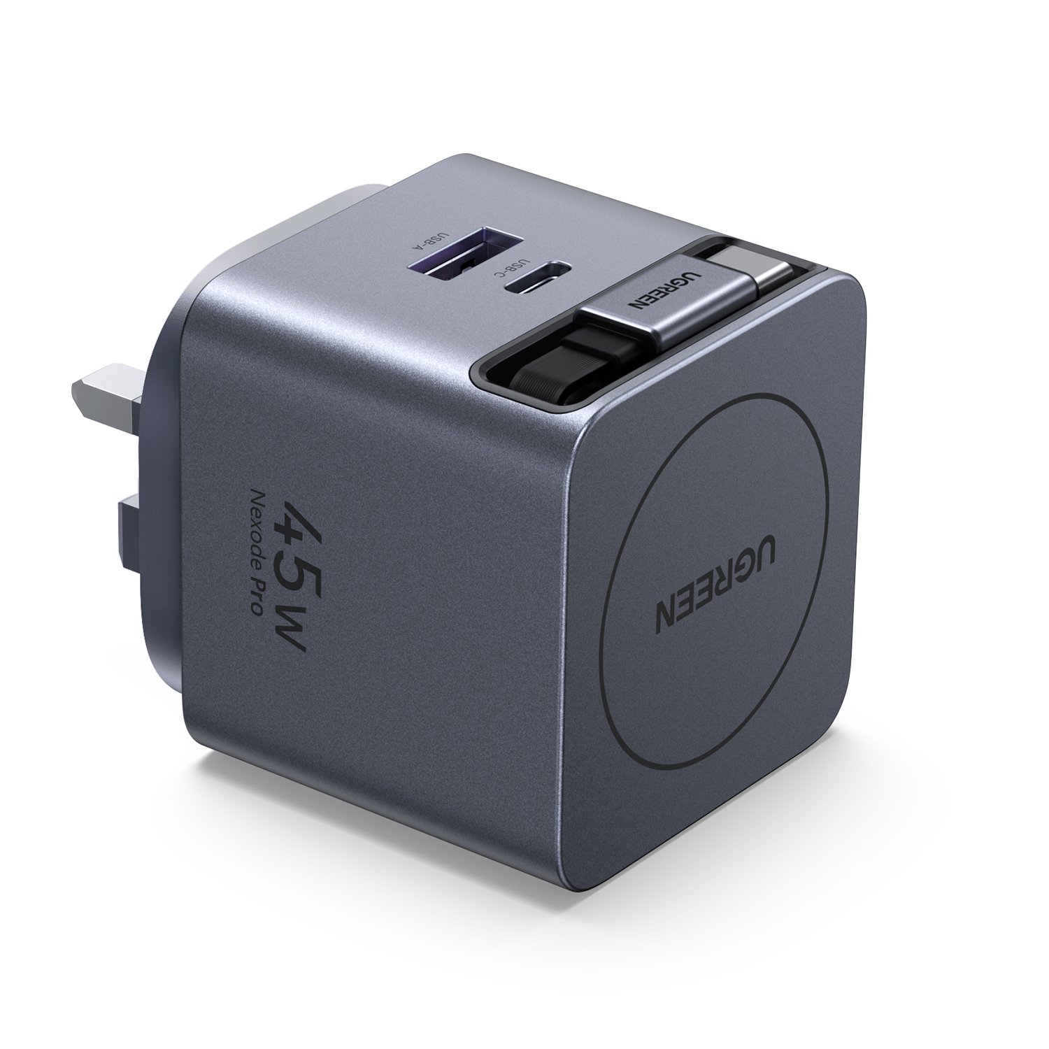 UGREEN 45W Nexode Pro GaN (USB-A*1 + Type-C*1) Fast Charger with Retractable Cable – X614 65823