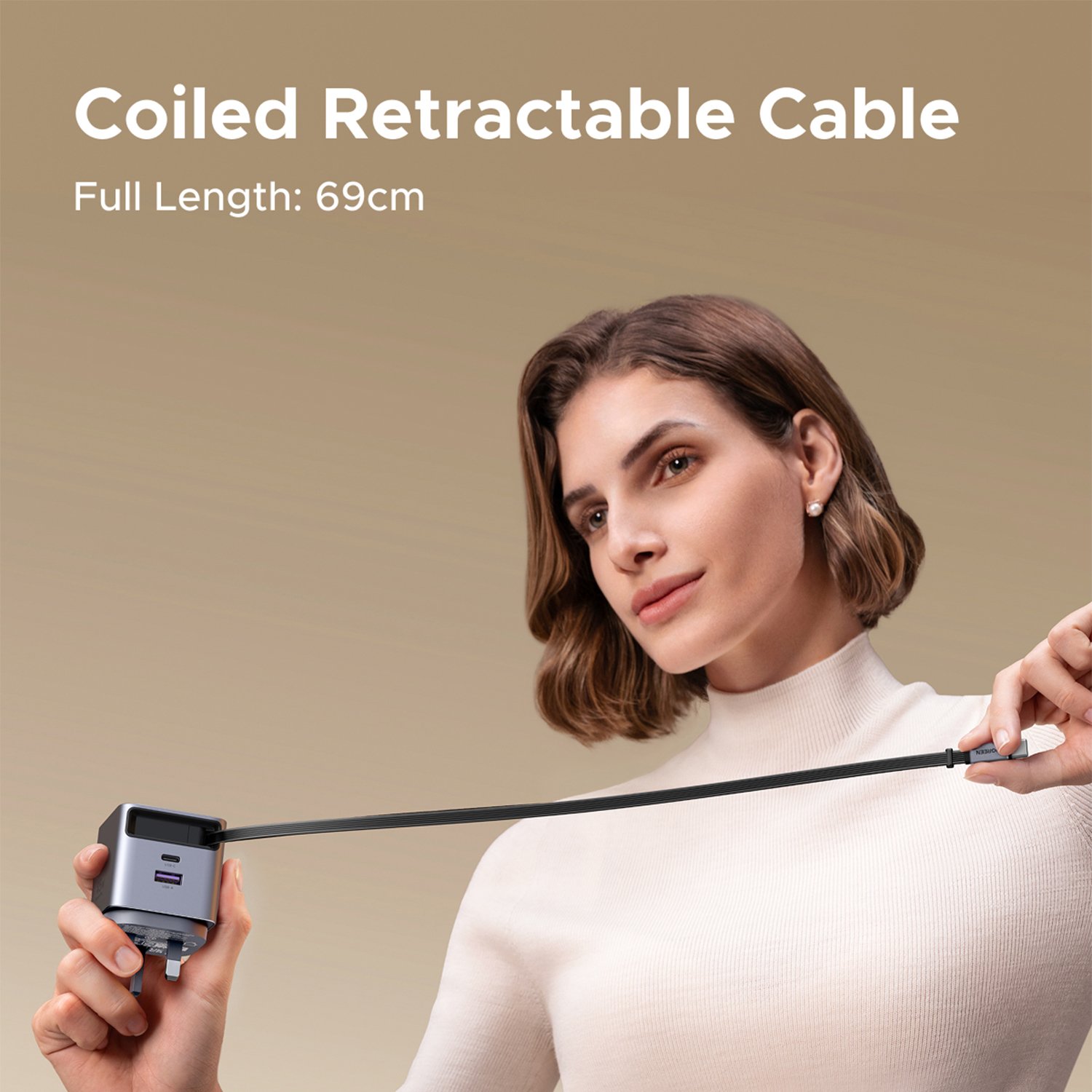 UGREEN 45W Nexode Pro GaN (USB-A*1 + Type-C*1) Fast Charger with Retractable Cable – X614 – 65823